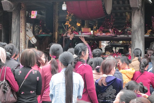 Khách thập phương dâng lễ “Vay tiền – trả lễ” ở đền Bà Chúa Kho.