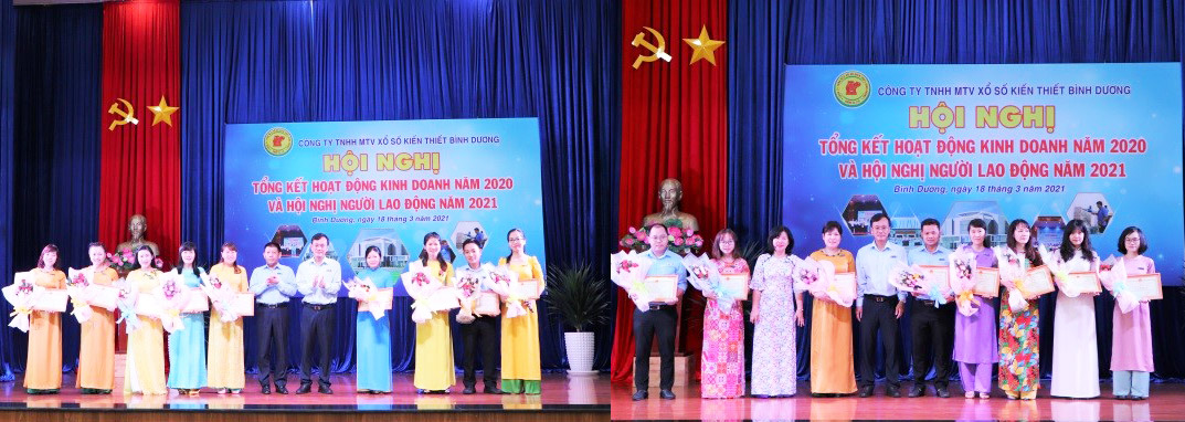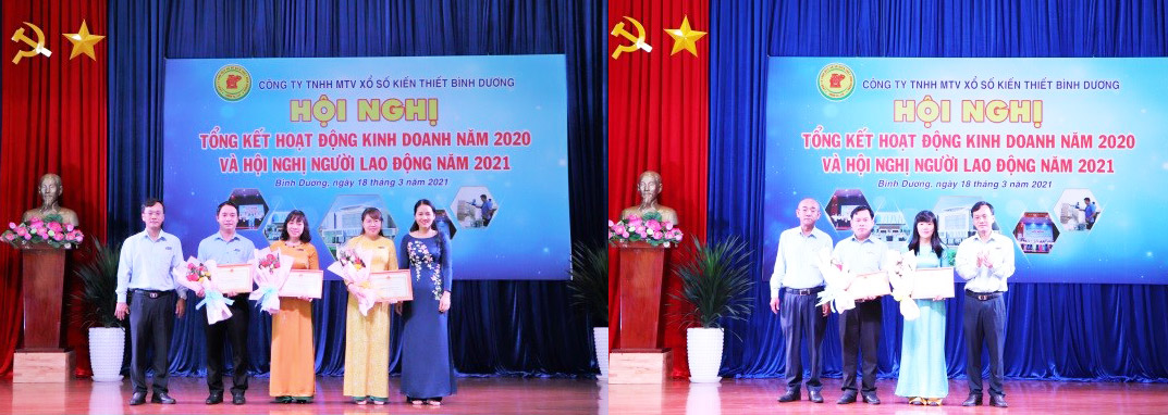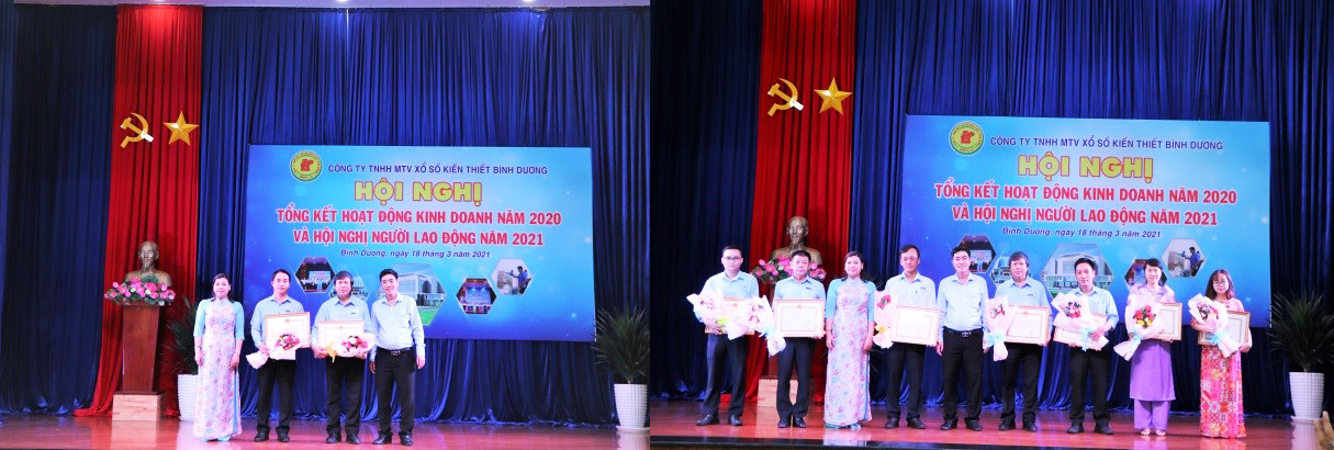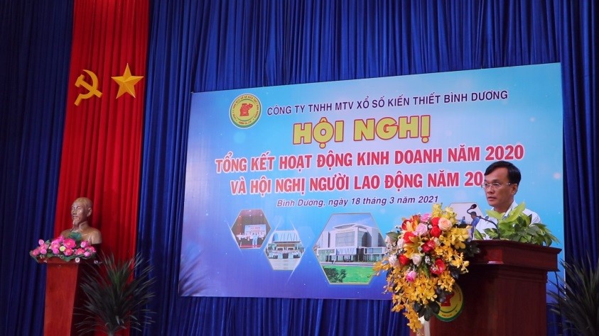 Sáng 18/3, Công ty TNHH MTV Xổ số kiến thiết Bình Dương tổ chức Hội nghị tổng kết hoạt động kinh doanh năm 2020 và Hội nghị Người lao động năm 2021. Tham dự Hội nghị có đại diện lãnh đạo các sở, ngành trong tỉnh Bình Dương: ông Phạm Quang Tuyên – Phó Giám đốc Sở Lao động – Thương binh và Xã hội, bà Ong Thuỵ Hoàng Mai – Phó Chủ tịch Liên đoàn Lao động; bà Nguyễn Thị Xuân Mai – Phó Bí thư Đảng uỷ khối các Cơ quan & Doanh nghiệp; bà Nguyễn Thị Hoàng – Phó Trưởng ban TĐKT. Về phía Công ty có bà Nguyễn Thị Kim Mai – Bí thư Đảng uỷ, Chủ tịch Công ty; ông Mai Thanh Bình – Giám đốc, đại diện Người sử dụng lao động, bà Phan Minh Ngữ – Chủ tịch Công đoàn cơ sở, đại diện Người lao động và toàn thể người lao động của Công ty.