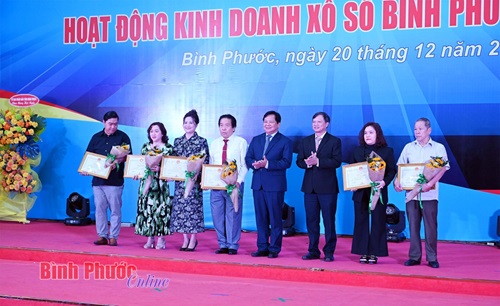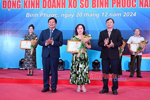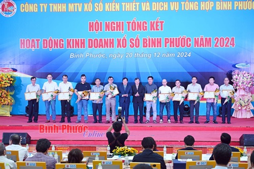 Dịp này, 45 đại lý xổ số được Chủ tịch UBND tỉnh Bình Phước tặng bằng khen vì có thành tích xuất sắc trong công tác tiêu thụ vé số Bình Phước, góp phần vào sự nghiệp phát triển kinh tế – xã hội của tỉnh năm 2024.
