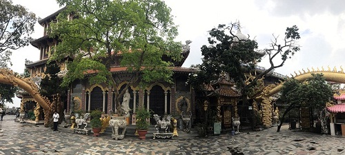 Nơi đây không chỉ có lối kiến trúc độc đáo mà không gian cũng vô cùng nên thơ. Điểm nhấn nổi bật nhất trong trang trí kiến trúc chùa là sự kết hợp của nhiều mảnh gốm sứ gắn kết tạo thành hình con rồng dài hơn cả trăm mét.