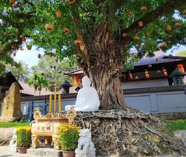 Bước vào chùa, dường như mọi hỉ, nộ, ái, ố của cuộc sống được bỏ lại sau lưng, thay vào đó là không gian tĩnh lặng, tiếng nhạc thiền ngân vang hòa cùng tiếng mõ, chuông, tạo nên nhiều cung bậc cảm xúc khác nhau nhưng rất đỗi nhẹ nhàng và thanh tịnh. Ấn tượng nhất là Cây bồ đề cổ thụ, thân cây có đường kính khoảng 1,5m, tán lá xum xuê, toàn bộ cội rễ đều mọc ra phía trước và hai bên mà không hề mọc vào trong sân chùa, dưới gốc là tượng Phật Thích Ca tọa thiền thanh thoát, an nhiên tự tại. Điều kỳ lạ là cội rễ của cây bồ đề bao trùm lên bệ tượng và đưa pho tượng lên cao hơn so với vị trí ban đầu, càng tạo nên một vẻ huyền bí linh thiêng. Chính bởi sự kỳ lạ đầy vẻ huyền bí linh thiêng này từ lâu đã thu hút đông đảo du khách viếng thăm, dâng hương nguyện cầu sự bình an, may mắn và sức khỏe cho bản thân, gia đình…Tuy nhiên, trong dòng người hàng năm hành hương viếng thăm dâng hương nguyện cầu ấy, cũng có không ít người đến cầu mua may bán đắt, cầu trúng xổ số, lô đề…để nhanh chóng đổi đời.