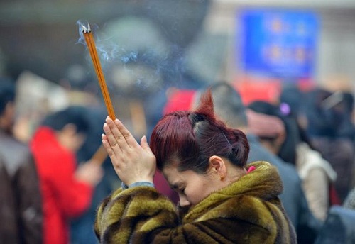 Du khách thắp nhang thành tâm khấn vái ở chùa Linh Quang