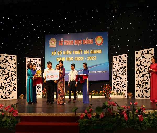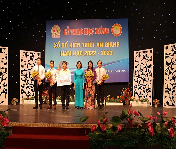 Công ty Xổ số kiến thiết An Giang cùng các Công ty Xổ số kiến thiết Bà Rịa - Vũng Tàu, Bến Tre, Sóc Trăng, Tây Ninh vừa tổ chức trao học bổng Xổ số kiến thiết An Giang cho 110 học sinh học giỏi, gia đình có hoàn cảnh khó khăn tại tỉnh An Giang