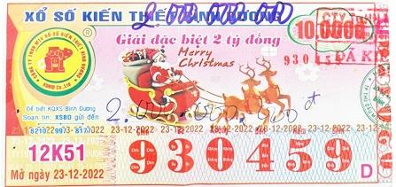 - Công ty TNHH MTV Xổ số Kiến thiết Bình Dương: Công bố thông tin trả thưởng kỳ vé 12K51 ngày 23/12/2023