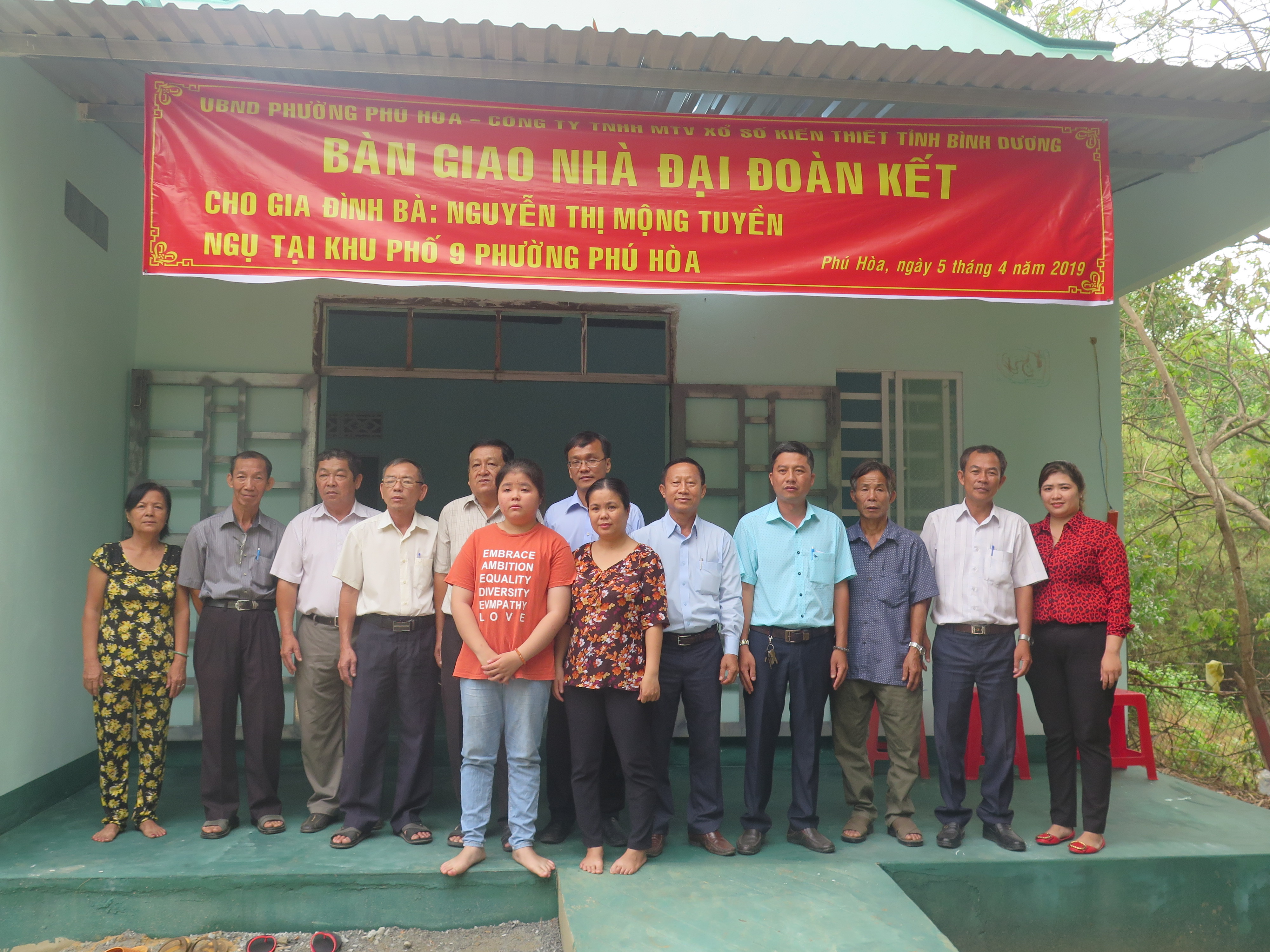 Đại diện Công ty trao tặng nhà Đại đoàn kết cho hộ gia đình có hoàn cảnh khó khăn về nhà ở