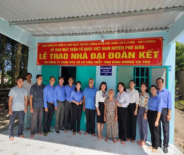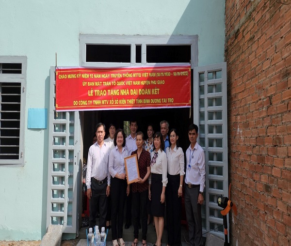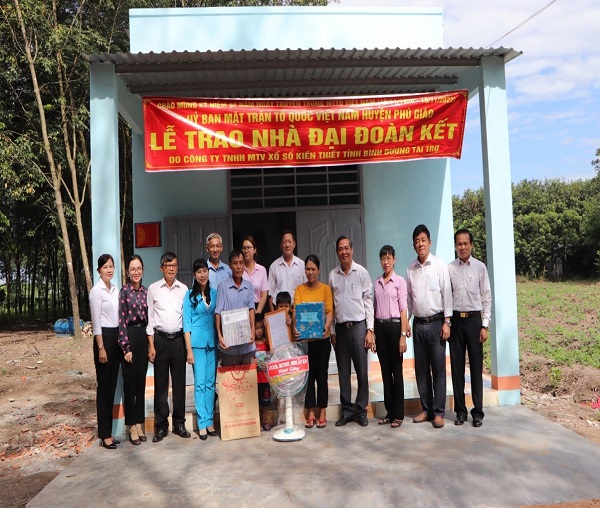 Ngày 14/11/2022, Công ty TNHH MTV Xổ số kiến thiết Bình Dương phối hợp cùng Uỷ ban Mặt trận Tổ quốc Việt Nam huyện Phú Giáo, tỉnh Bình Dương tổ chức lễ trao tặng 11 nhà Đại đoàn kết cho hộ nghèo khó khăn về nhà ở tại huyện Phú Giáo. Đây là các căn nhà Đại đoàn kết do Công ty TNHH MTV Xổ số kiến thiết Bình Dương tài trợ xây dựng, kinh phí xây dựng mỗi căn là 100 triệu đồng.