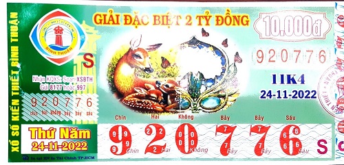 - Công ty TNHH MTV Xổ số Kiến thiết Bình Thuận: Công bố thông tin trả thưởng kỳ vé 11K4 ngày 24/11/2022