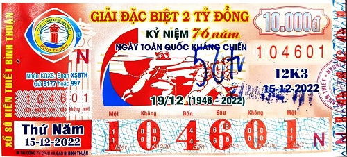 - Công ty TNHH MTV Xổ số Kiến thiết Bình Thuận: Công bố thông tin trả thưởng kỳ vé 12K3 ngày 15/12/2022