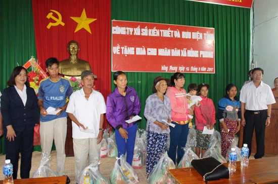 Sáng ngày 15/9/2017, Ông Huỳnh Cao Cảnh - Phó Giám đốc, cùng CBNV công ty có mặt tại UBND xã Hồng Phong trao tặng 50 suất quà trị giá 15.000.000đồng (300.000đồng/1 suất).