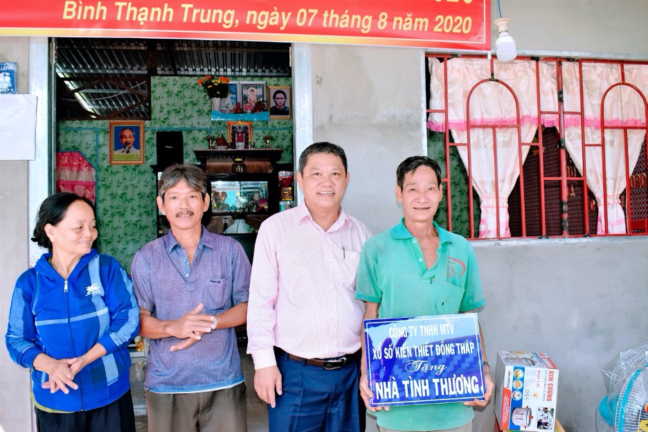 Công ty TNHH MTV Xổ số Kiến thiết Đồng Tháp vừa bàn giao nhà tình thương cho gia đình có hoàn cảnh khó khăn ở xã Bình Thạnh Trung, huyện Lấp Vò, tỉnh Đồng Tháp.