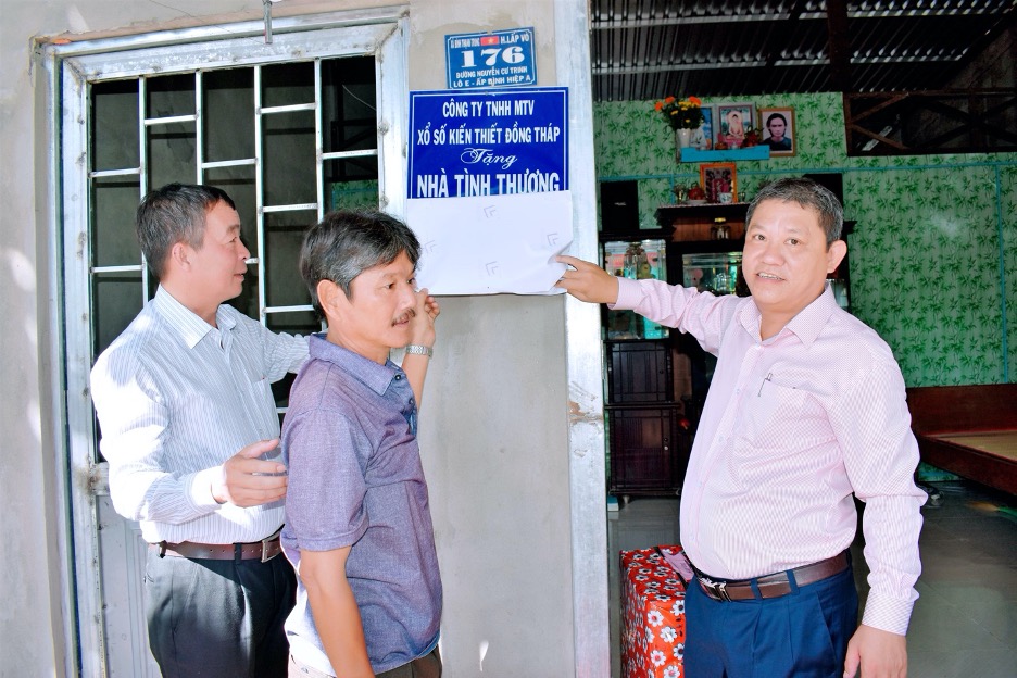 Chia sẻ và đồng cảm với những khó khăn của các hộ gia đình, Công ty TNHH MTV Xổ số Kiến thiết Đồng Tháp đã hỗ trợ 40 triệu đồng/hộ để mỗi gia đình có thể xây dựng căn nhà mới, phần còn lại gia đình đối ứng thêm. Được trao tặng căn nhà thấm đượm nghĩa tình đồng đội tươm tất, hoàn chỉnh, các gia đình đã không khỏi xúc động và gửi lời cảm ơn sâu sắc đến nhà tài trợ chính – Công ty TNHH MTV Xổ số Kiến thiết Đồng Tháp đã hỗ trợ gia đình xây dựng mái ấm vững chắc, góp phần giúp gia đình cải thiện đời sống, vượt qua khó khăn.