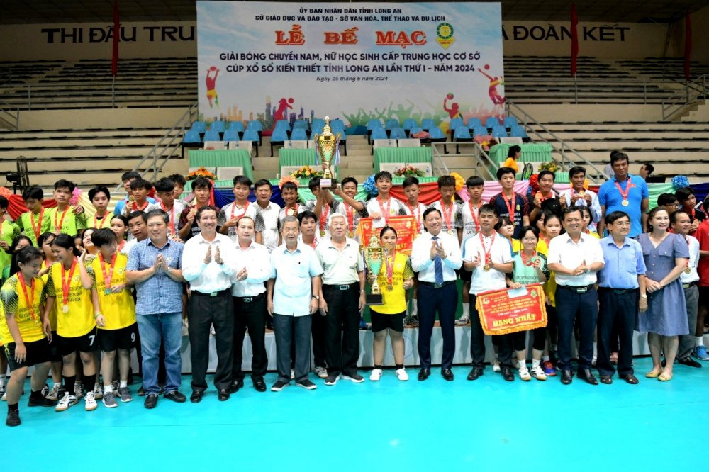 Sau 3 ngày tranh tài sôi nổi tại nhà thi đấu tỉnh, đội nữ Tân Thạnh và đội nam Đức Hoà đã giành Cúp vô địch Giải bóng chuyền nam, nữ học sinh cấp trung học cơ sở - Cúp Xổ số Kiến thiết tỉnh Long An lần thứ I, năm 2024.