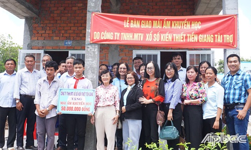 Mỗi mái Ấm khuyến học được Công ty TNHH MTVXổ số kiến thiếtTiền Giang tài trợ 50 triệu đồng, phần còn lại đó gia đình đóng góp thêm.