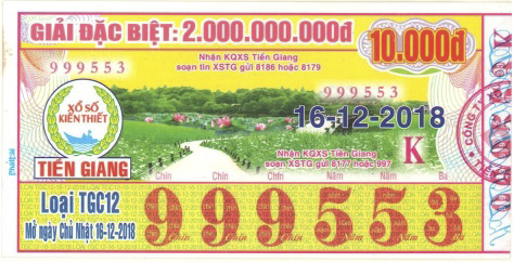 - Công ty TNHH MTV Xổ số kiến thiết Tiền Giang: Công bố thông tin trúng thưởng - Kỳ vé TGC12