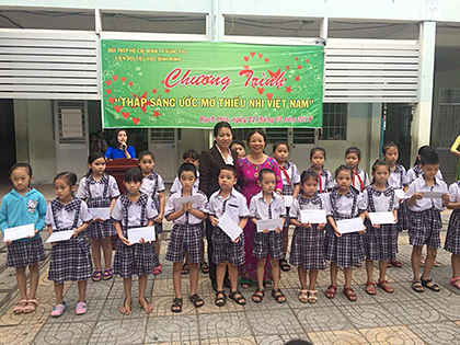 Lãnh đạo Công ty TNHH MTV Xổ số kiến thiết BR-VT trao học bổng cho học sinh nghèo vượt khó học giỏi tại Trường TH Bình Minh.