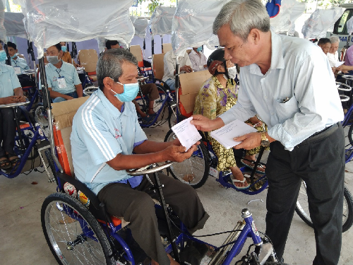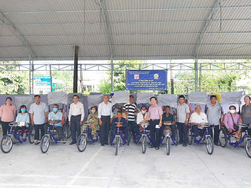 Hội Bảo trợ Người khuyết tật và Nạn nhân chất độc da cam/Dioxin tỉnh Trà Vinh phối hợp cùng Hội Bảo trợ bệnh nhân nghèo Thành phố Hồ Chí Minh vận động nguồn tài trợ từ Công ty TNHH MTV xổ số kiến thiết Thành phố Hồ Chí Minh tổ chức buổi lễ trao tặng xe lắc năm 2022.