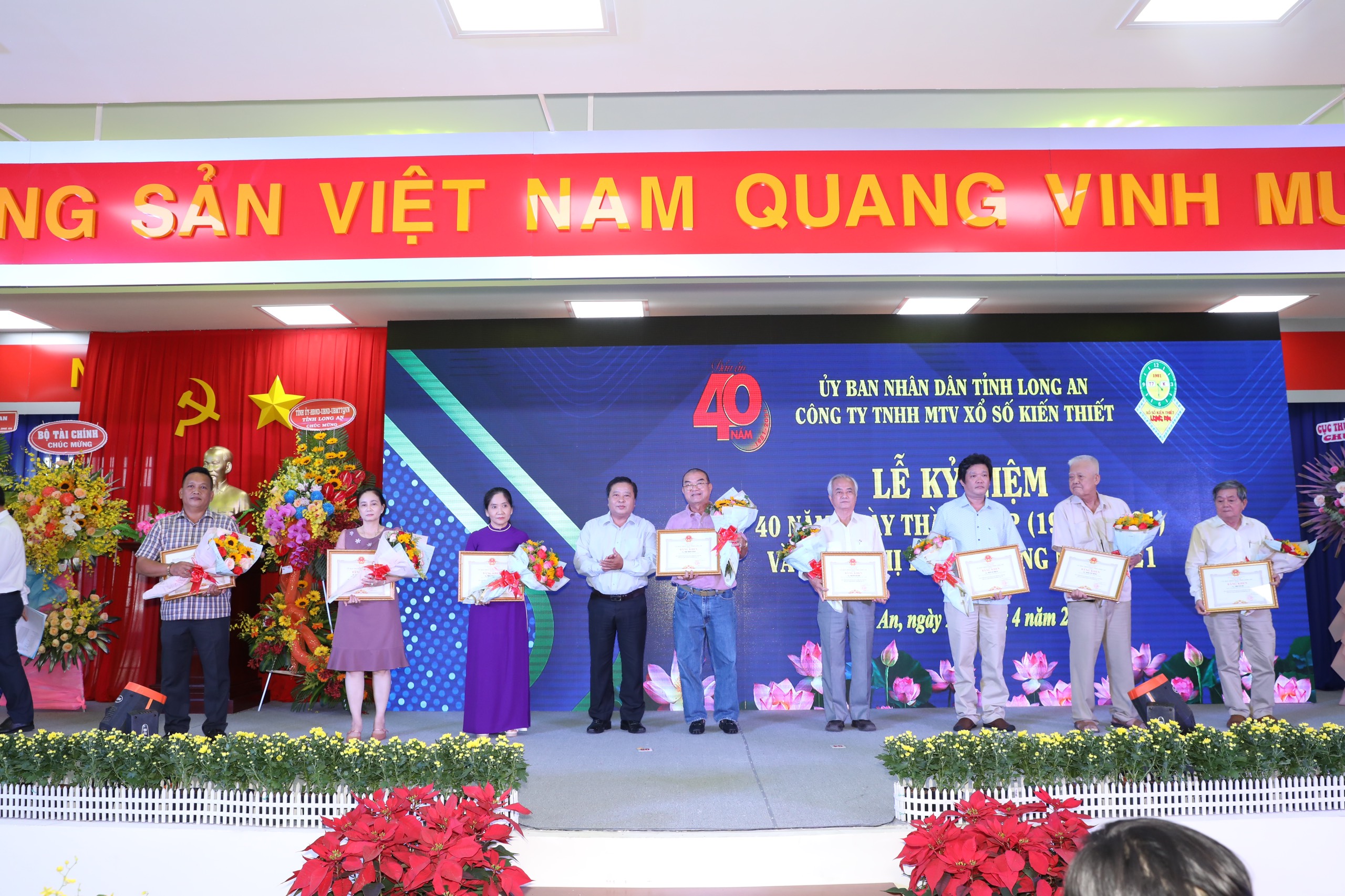 Công ty TNHH MTV Xổ số kiến thiết Long An vừa long trọng tổ chức lễ kỷ niệm 40 năm ngày thành lập Công ty (1981-2021). Đến dự có các ông: Lê Thanh Nghiêm, Ủy viên Ban Thường vụ Tỉnh ủy, Trưởng Ban Tổ chức Tỉnh ủy Long An; Trần Văn Dũng, Ủy viên Ban Thường vụ Tỉnh ủy, Chủ nhiệm Ủy ban Kiểm tra Tỉnh ủy Long An; Phạm Tấn Hòa, Tỉnh ủy viên, Phó Chủ tịch UBND tỉnh Long An; các vị nguyên lãnh đạo Tỉnh ủy, UBND Tỉnh qua các thời kỳ; đại diện Bộ Tài chính; lãnh đạo các Công ty Xổ số kiến thiết khu vực miền Nam, gần 90 đại lý xổ số Long An cùng lãnh đạo và toàn thể cán bộ, người lao độngCông ty Xổ số kiến thiết Long An
