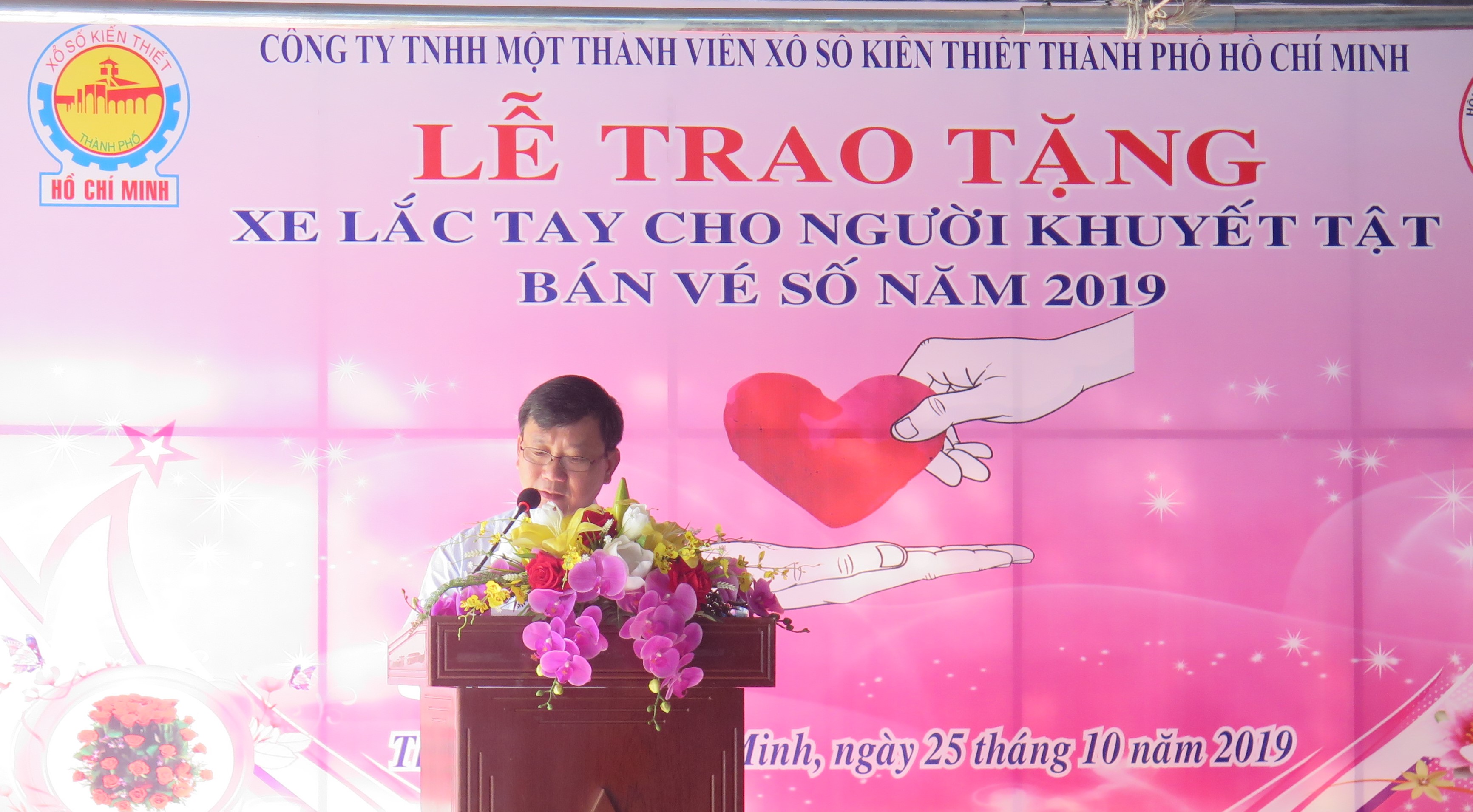 Thay mặt lãnh đạo Công ty TNHH MTV XSKT thành phố Hồ Chí Minh, ông Đỗ Quang Vinh đã nêu bật ý nghĩa của việc tặng xe lắc tay cho người khuyết tật bán vé số. Ông Đỗ Quang Vinh nhấn mạnh: Đây là việc làm thường xuyên trong nhiều năm qua của công ty nhằm tạo điều kiện thuận lợi cho người khuyết tật giảm bớt phần nào khó khăn, vất vả trong việc mua bán vé số hàng ngày để mưu sinh.