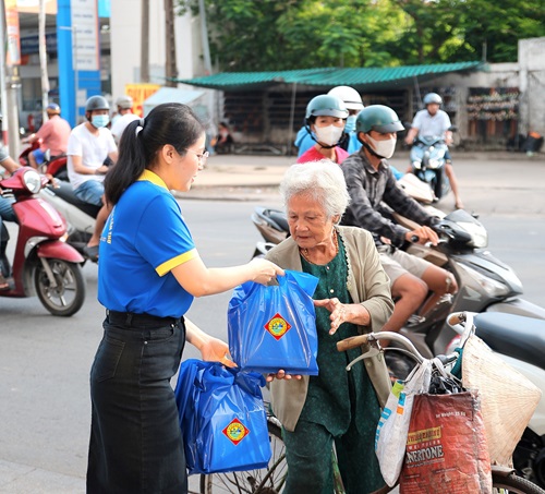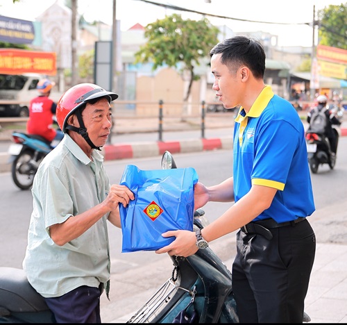 Công ty TNHH Nhà nước một thành viên Xổ số kiến thiết Cần Thơ: Tổ chức trao quà tặng gồm tập và áo mưa cho người bán vé số dạo trước trụ sở Công ty
