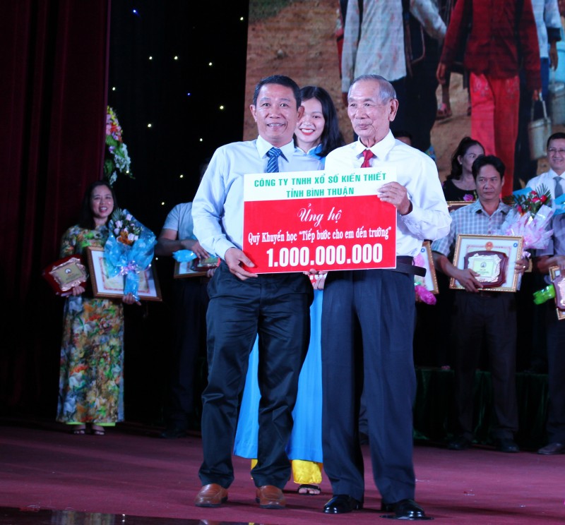 Công ty TNHH Xổ số kiến thiết Bình Thuận trao tặng số tiền 1 tỷ đồng cho quỹ “Tiếp bước cho em đến trường”.
