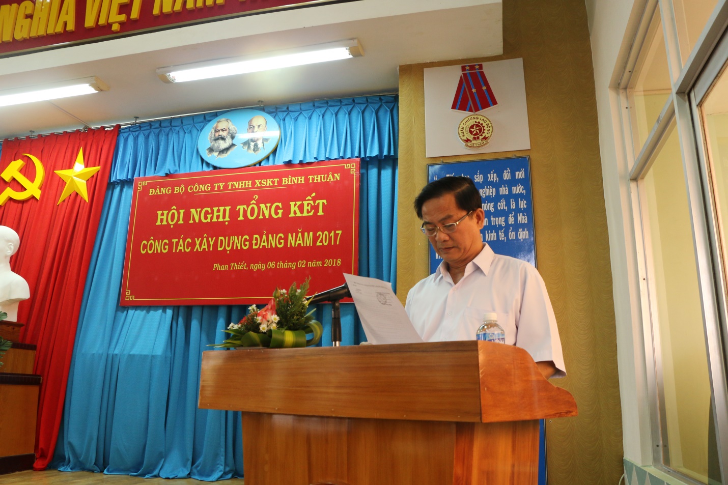 Ngày 05/02/2018, Đảng ủy Công ty TNHH Xổ số kiến thiết Bình Thuận đã tổ chức hội nghị tổng kết công tác xây dựng Đảng năm 2017 và triển khai nhiệm vụ năm 2018.