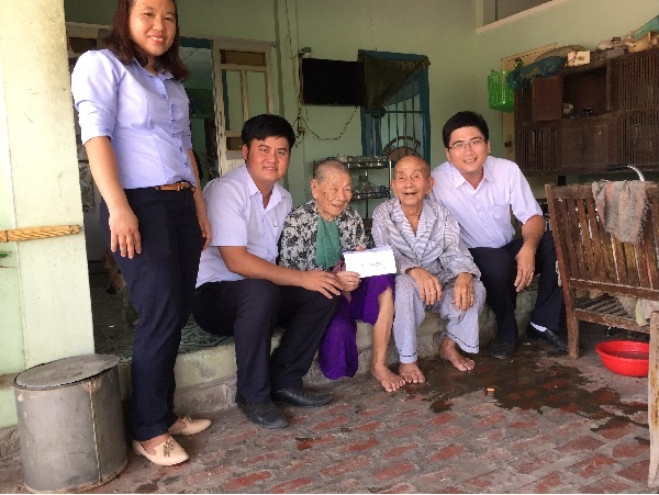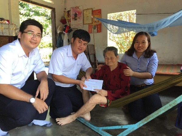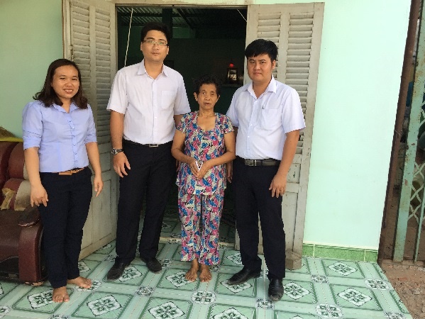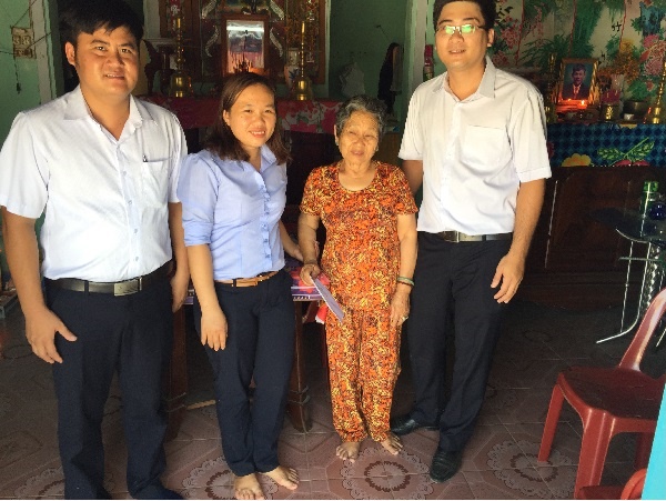 Đại diện Công ty TNHH Xổ số kiến thiết Bình thuận trao định suất Quý II/2018 cho Bà Trần Thị Lánh (Thương binh là nạn nhân chất độc màu da cam, tại P.Mũi Né – Tp.Phan Thiết)