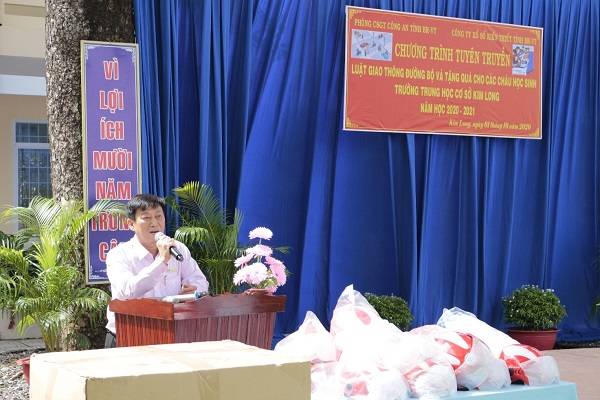 Công ty TNHH MTV Xổ số Kiến thiết tỉnh Bà Rịa - Vũng Tàu vừa phối hợp cùng Phòng Cảnh sát giao thông Công an tỉnh Bà Rịa - Vũng Tàu đã tổ chức buổi tuyên truyền về Luật Giao thông và tặng mũ bảo hiểm, vở học sinh cho học sinh trường Trung học cơ sở Kim Long, huyện Châu Đức, tỉnh Bà Rịa - Vũng Tàu.