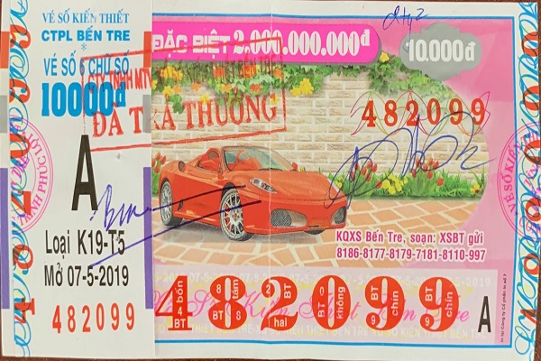 - Công ty Xổ số kiến thiết Bến Tre: Công bố thông tin trả thưởng, kỳ K19-T5