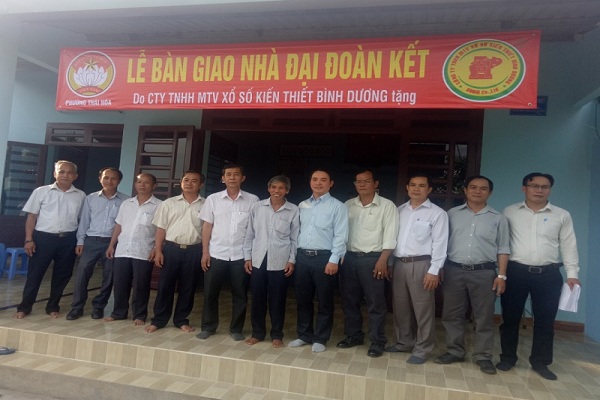 Vừa qua, Công ty TNHH MTV xổ số kiến thiết Bình Dương đã phối hợp với UBND Thị xã Tân Uyên, tỉnh Bình Dương tổ chức trao tặng 02 căn nhà đại đoàn kết cho hộ nghèo gặp khó khăn về nhà ở tại địa phương.
