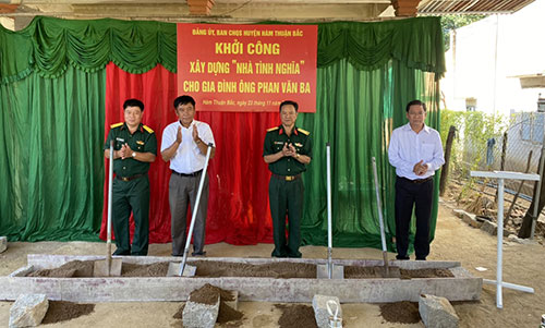 Nhằm giúp hộ gia đình cựu chiến binh có hoàn cảnh khó khăn ổn định cuộc sống, mới đây, Bộ Chỉ huy Quân sự tỉnh phối hợp Công ty Xổ số Kiến thiết Bình Thuận, Ban Chỉ huy Quân sự huyện Hàm Thuận Bắc tổ chức lễ khởi công công trình xây dựng nhà tình nghĩa cho hộ ông Phan Văn Ba, thôn Phú Thái, xã Hàm Trí, huyện Hàm Thuận Bắc.
