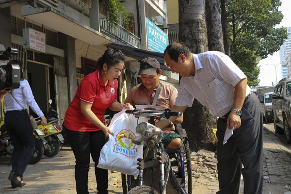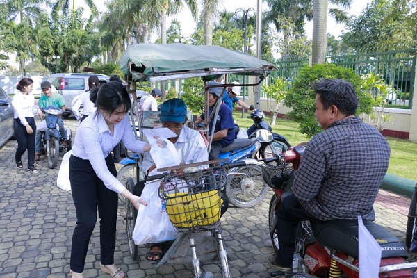 Đoàn Thanh niên trao quà cho người bán vé số dạo có hoàn cảnh khó khăn