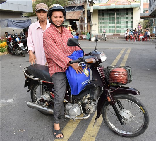 Người bán vé số vui vẻ mang quà về nhà ăn Tết