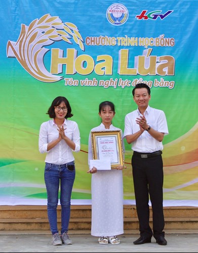 Chương trình “học bổng Hoa lúa” đã ghi nhận được hoàn cảnh của em Nguyễn Thị Thùy Duy, lớp 12A2, trường THPT Vĩnh Tường, huyện Vị Thủy, tỉnh Hậu Giang. Cô học trò có hoàn cảnh rất khó khăn, em không được may mắn như bao người khi ba em đã mất từ khi em còn trong bụng mẹ, bệnh tim đã làm mẹ em mất đi khả năng lao động, còn người anh trai ở tuổi trưởng thành thì bổng dưng mang trong người bệnh lõm lồng ngực không thể làm chuyện nặng nhọc. Nhưng chưa bao giờ Thùy Duy tắt đi niềm hy vọng và sự lạc quan: “Đúng là so với bạn bè thì mình không bằng nhưng mà có thể nhìn xuống thì đã may mắn hơn những cái phận đời bất hạnh hơn mình và đó là cái động lực để thúc đẩy em có phần nào cố lên và phải vượt qua cái khó khăn hiện tại.”