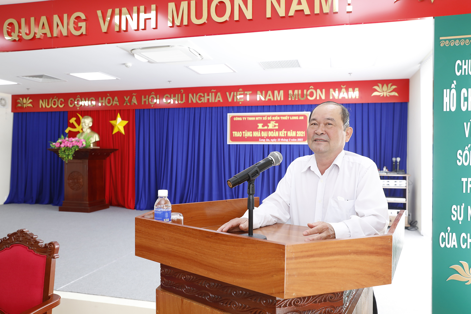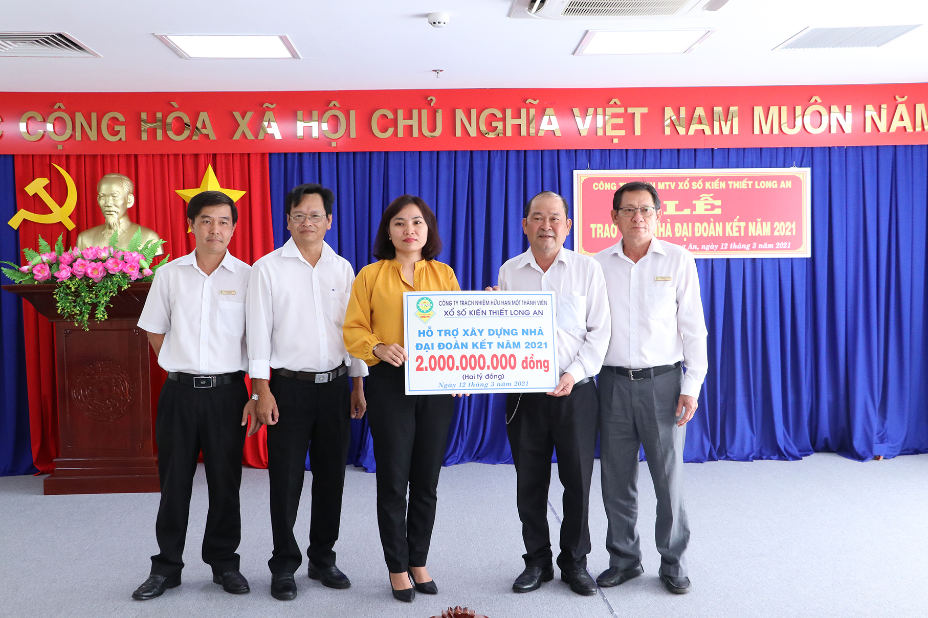 Công ty Xổ số kiến thiết Long An đã trao cho UBMTTQ Việt Nam tỉnh Long An bảng tượng trưng trị giá 2 tỷ đồng, là khoản tiền hỗ trợ xây dựng nhà đại đoàn kết năm 2021, trị giá 2 tỉ đồng.