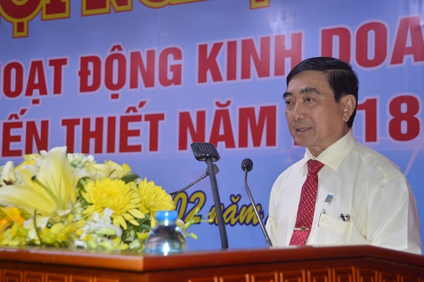 Ông Lê Văn Khanh – Giám đốc Công ty XSKT Sóc Trăng báo cáo hoạt động kinh doanh của đơn vị