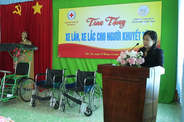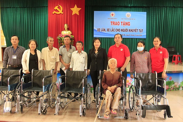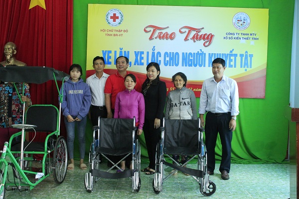 Sáng 01/12/2020, Hội Chữ thập đỏ tỉnh Bà Rịa – Vũng Tàu phối hợp với Công ty TNHH MTV Xổ số kiến thiết tỉnh Bà Rịa – Vũng Tàu đã tổ chúc trao tặng 09 chiếc xe lăn và 03 chiếc xe lắc cho người nghèo khuyết tật trên địa bàn Thị trấn Đất Đỏ và xã lộc An, huyện Đất Đỏ. Đây là hoạt động mở đầu cho chương trình hỗ trợ người nghèo khuyết tật với sự phối hợp giữa Công ty TNHH MTV Xổ số kiến thiết của tỉnh cùng Hội Chữ thập đỏ tỉnh, trao 55 xe lăn và 9 xe lắc, với tổng trị giá 125.000.000 đồng, nhằm giúp cho người khuyết tật nghèo có phương tiện di chuyển, tham gia sinh hoạt, hòa nhập cộng đồng; tham gia các hoạt động, ổn định cuộc sống gia đình.