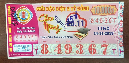 - Công ty Xổ số Kiến thiết tỉnh Bình Thuận: Công bố thông tin trả thưởng kỳ vé 11k2