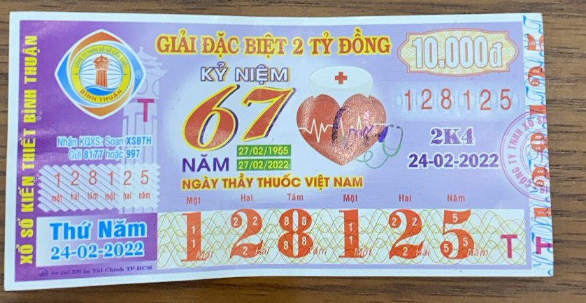 - Công ty Xổ số Kiến thiết tỉnh Bình Thuận: Công bố thông tin trả thưởng kỳ vé 2K4-2022
