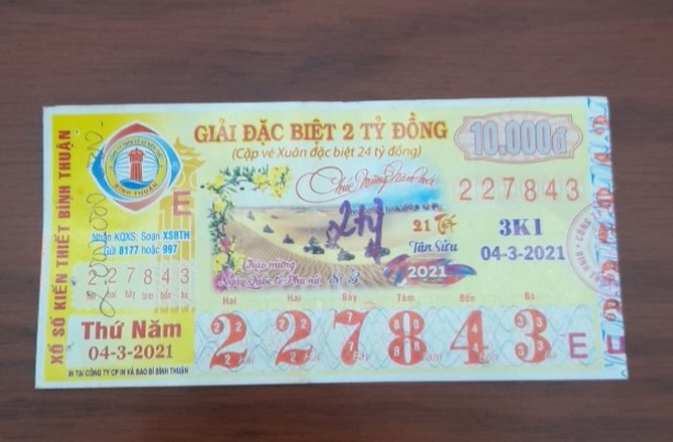 - Công ty Xổ số Kiến thiết tỉnh Bình Thuận: Công bố thông tin trả thưởng kỳ vé 3k1
