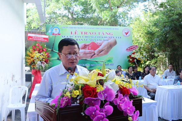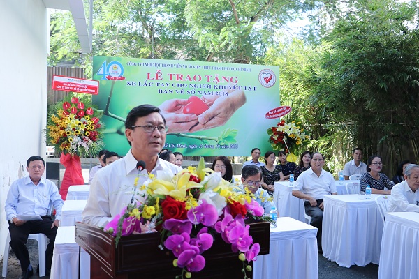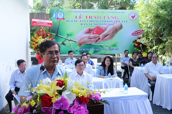 Tại buổi lễ, ông Đỗ Quang Vinh - Tổng Giám đốc Công ty TNHH MTV Xổ số kiến thiết TP.HCM phát biểu: “Công ty luôn chú trọng và quan tâm đến công tác an sinh xã hội để góp phần cùng với Thành phố chăm lo đời sống vật chất, tinh thần cho nhân dân, nhất là những người nghèo, người khuyết tật, người có hoàn cảnh khó khăn… Chúng tôi luôn mong rằng một trong những hoạt động thường niên này của công ty sẽ tiếp thêm sức mạnh về tinh thần cũng như phương tiện mưu sinh để những người khuyết tật có thể yên tâm lao động và trở thành những công dân có ích cho xã hội”.