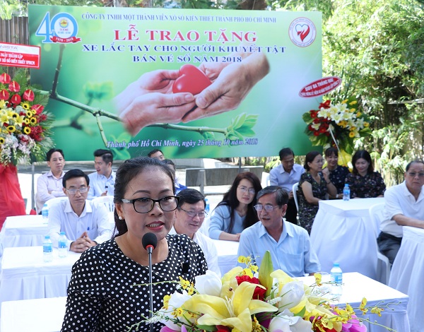 Nhằm tạo điều kiện cho những người khuyết tật có phương tiện đi lại để mưu sinh giảm bớt gánh nặng cho gia đình. Ngày 25/10/2018, công ty THHH MTV Xổ số Kiến thiết TP.HCM đã tổ chức lễ trao tặng 40 xe lắc tay (mỗi xe 4,8 triệu đồng) tổng giá trị 192,000,000 triệu đồng cho người khuyết tật bán vé số dạo trên địa bàn thành phố.