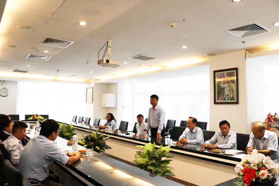 Đ/c Nguyễn Quốc Chiến, Chủ tịch HĐTV Công ty, thay mặt Ban lãnh đạo phát biểu thăm hỏi động viên CBCNV- người lao động có người thân gia đình TBLS.