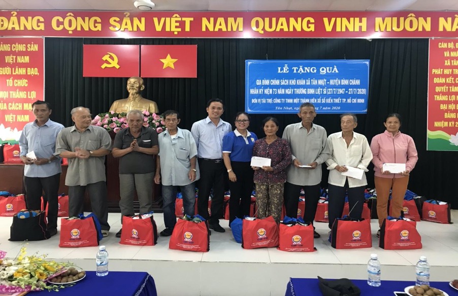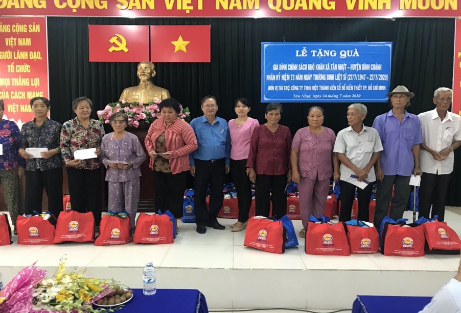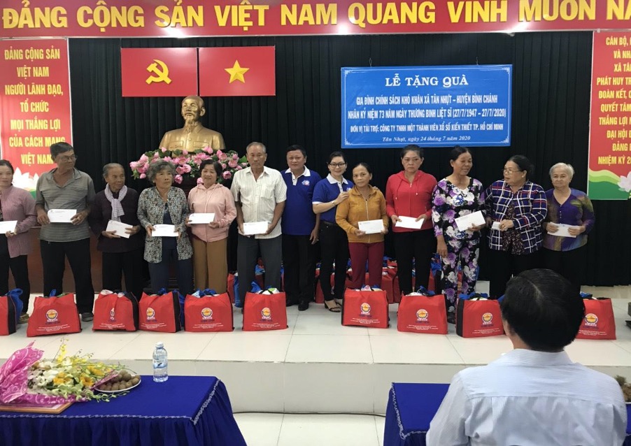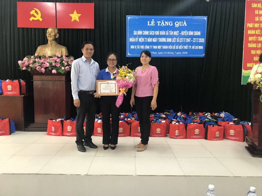 Đoàn CBCNV-Người lao động Công ty TNHH MTV Xổ Số TP.HCM do bà Phan Thị Sang, phó Tổng giám đốc Công ty làm trưởng đoàn, đến thăm và tặng quà cho bà con gia đình chính sách tại xã Tân Nhựt, huyện Bình Chánh, TP.HCM nhân dịp 73 năm ngày TBLS(27/7/1947-27/7/2020).