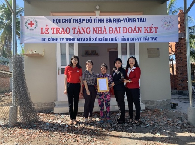 Ảnh:Hội Chữ thập đỏ tỉnh phối hợp với Công ty TNHH MTV Xổ số kiến thiết tỉnh tổ chức lễ bàn giao nhà Đại đoàn kết cho hộ bà Đỗ Thị Mỹ Hạnh (ấp Phước Lăng, xã Tam Phước, huyện Long Điền).