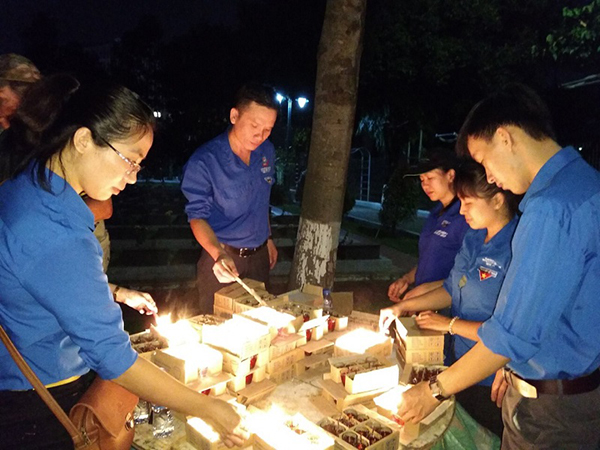 Đoàn viên Công ty đang thắp nến trước khi mang đến các phần mộ