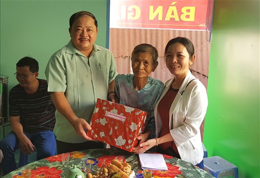 Gởi tặng quà cho bà Trần Thị Thét nhân dịp bàn giao nhà mới