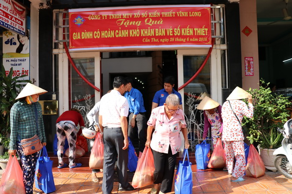 Tiếp nối tinh thần vì cộng đồng và các hoạt động xã hội – từ thiện trong năm 2018, vào ngày 28/6/2018 vừa qua, Công ty TNHH MTV Xổ số kiến thiết Vĩnh Long đã tiếp tục trao tặng 120 phần quà cho gia đình có hoàn cảnh khó khăn bán vé số kiến thiết tại TP Cần Thơ và Ô Môn.