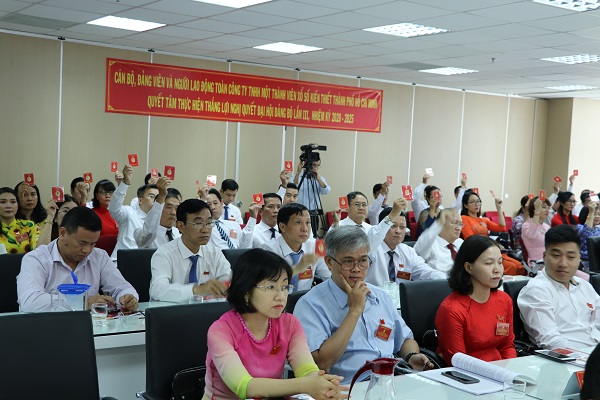 Các Đảng viên Đảng bộ Công ty thông qua biểu quyết thông qua nghị quyết tại Đại hội