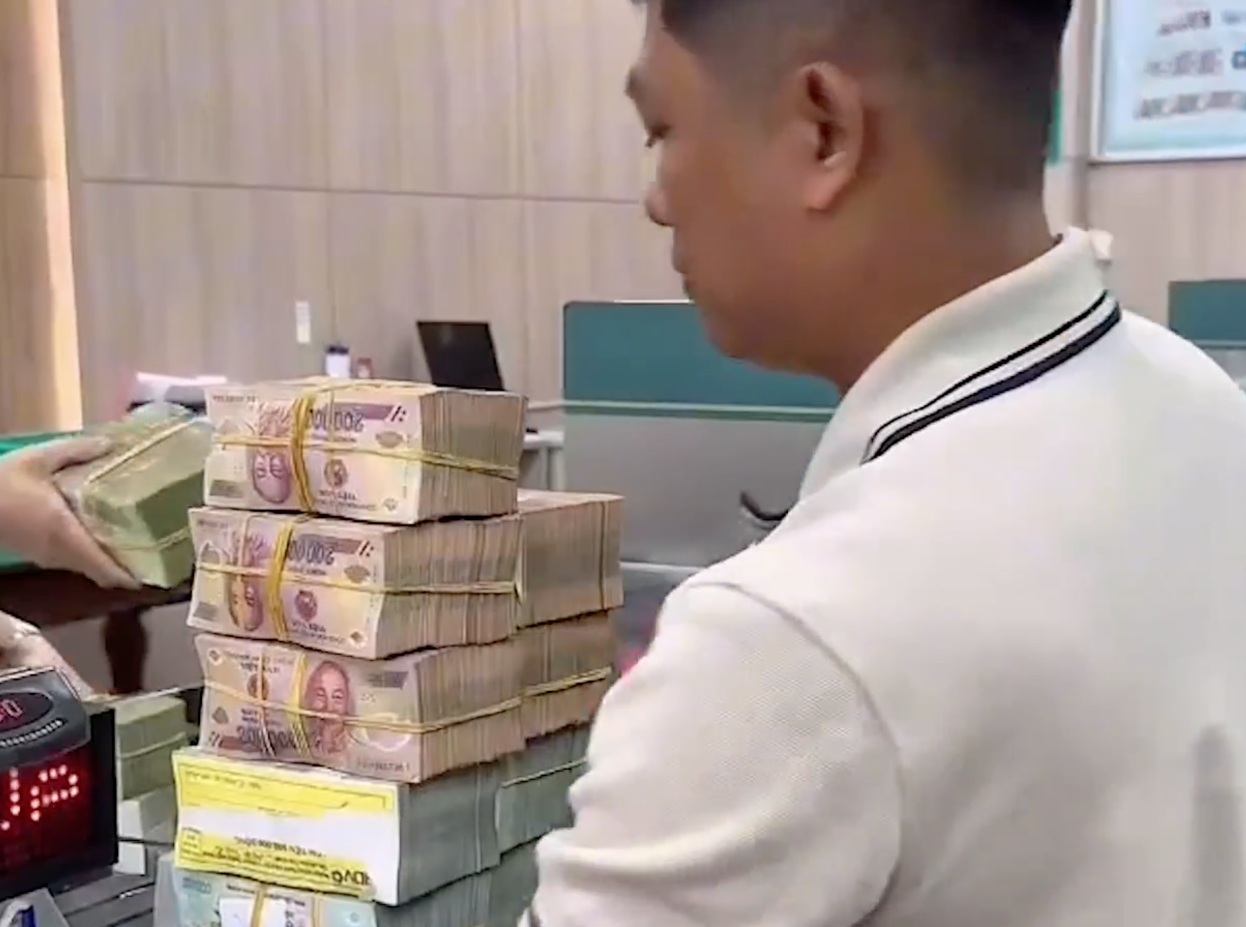 Chủ Đại lý Phú Vinh đên ngân hàng rút tiền trả cho chủ nhân 7 tờ vé số trúng thưởng
