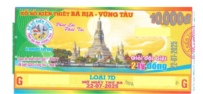 Giải đặc biệt xổ số Vũng Tàu Kỳ vé 7D mở thưởng ngày 22/07/2025